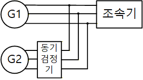 유기기전력의 크기, 위상, 주파수, 파형이 동일한 값이 되도록 조정하고 차단기를 닫는다.