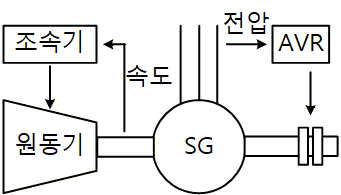 원동기의 동력을 제어함으로써 발전기의 주파수를 제어하는 장치를 **조속기(governor)**라 부른다